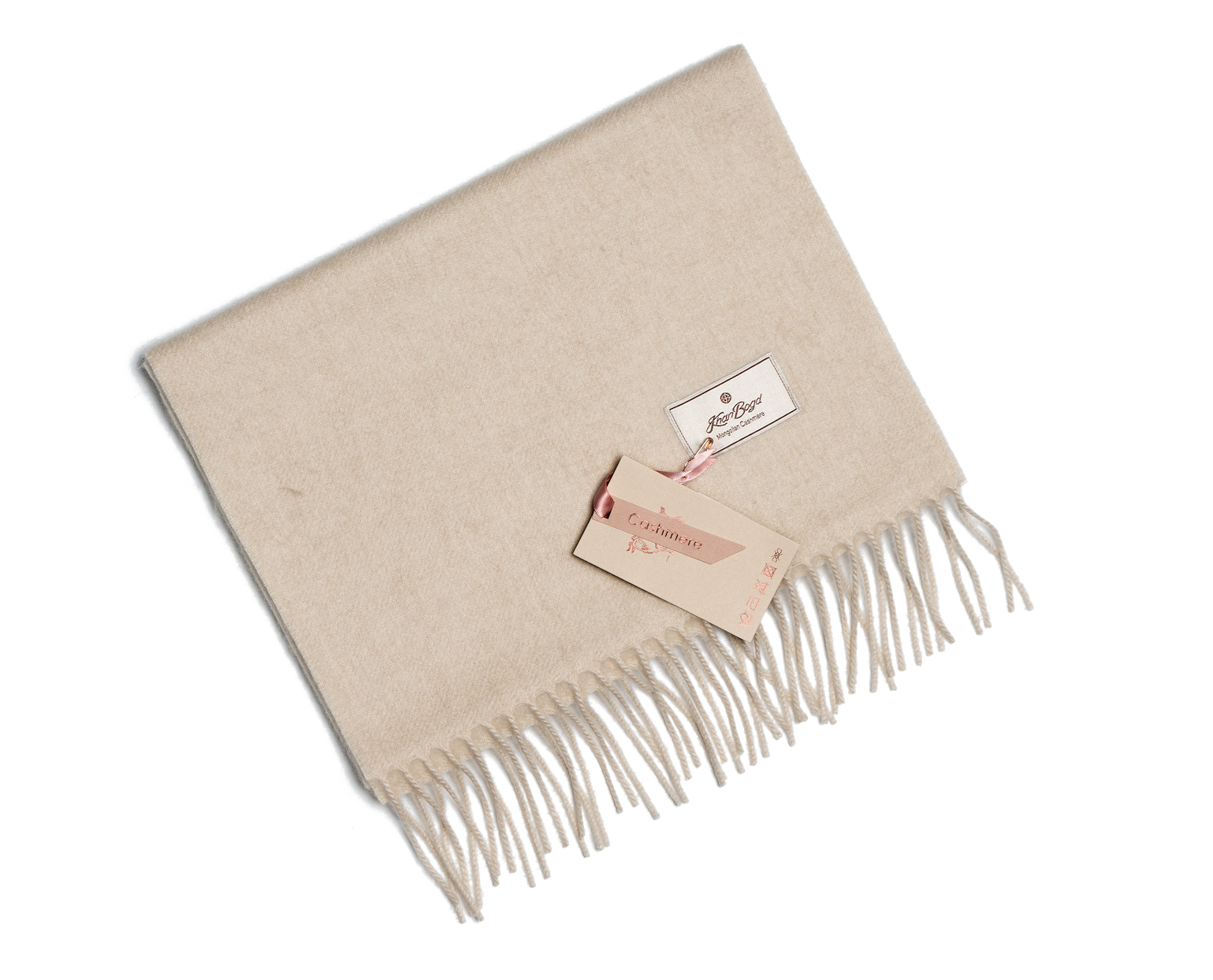 Experience pure comfort and understated elegance with this classic light beige cashmere scarf, crafted from 100% Mongolian cashmere. Soft, warm, and feather-light, it embodies the essence of minimalist luxury. The delicate fringe edges add a touch of sophistication, while its neutral tone pairs effortlessly with any outfit. Sustainably produced and exquisitely woven, this scarf is a wardrobe essential that combines warmth, durability, and timeless style.